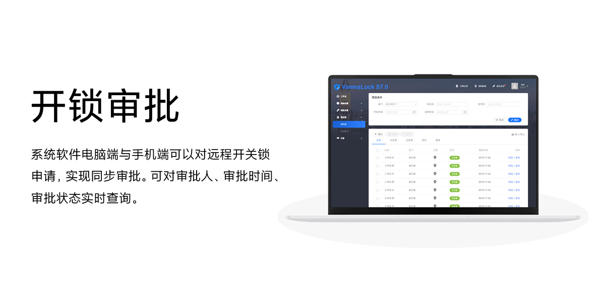 系統(tǒng)軟件電腦端與手機(jī)端可以對遠(yuǎn)程開關(guān)鎖申請,實(shí)現(xiàn)同步審批。可對審批人、審批時間、審批狀態(tài)實(shí)時查詢。