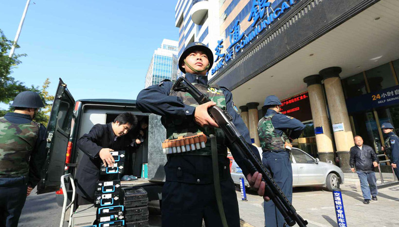 4. 營業(yè)終了,柜員和主管一起鎖箱并交接給押運人員;