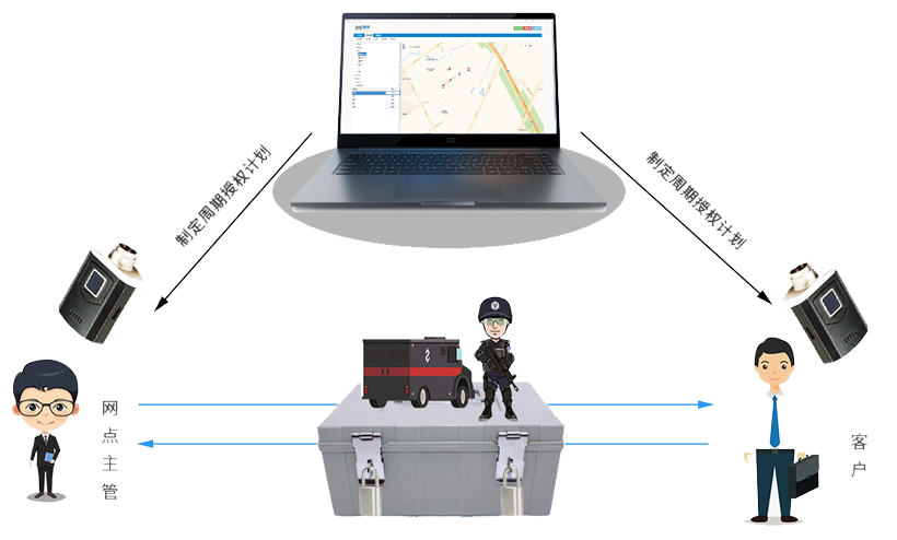1>收款箱和鎖綁定,鎖與網點指紋電子鑰匙綁定;