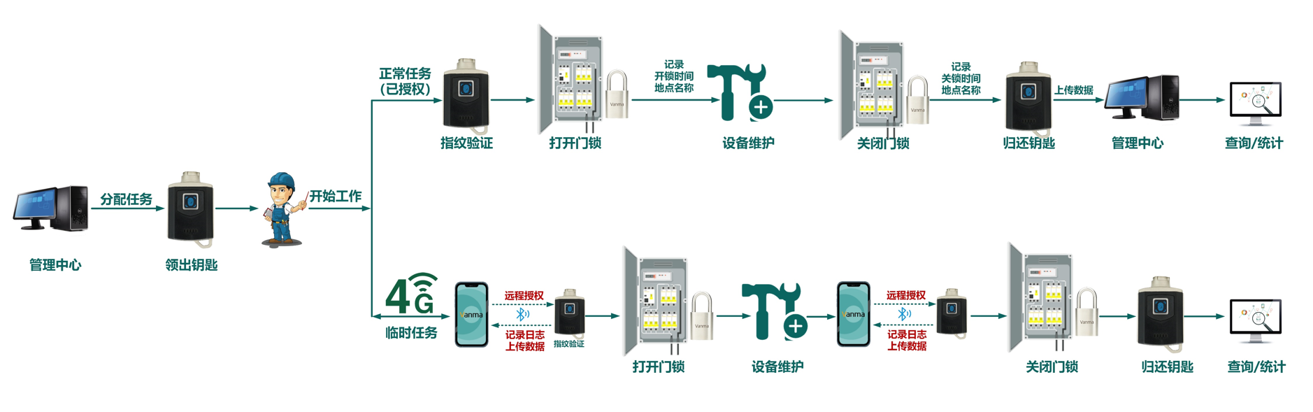 智能無源電子鎖具管理系統對鎖具進行了規范統一的管理,實現了鑰匙數量的減少以及對鑰匙領用與歸還的有效管理;通過開關鎖記錄功能,實現了整個鎖具管理過程的可視化,真正實現了鎖具的智能化和數據化管理;Vanma智能鎖控系統可提供多種開鎖授權方式,可以適合不同情況下的開鎖,對操作人員的便利性及其安全性都具有十分重要的意義。
