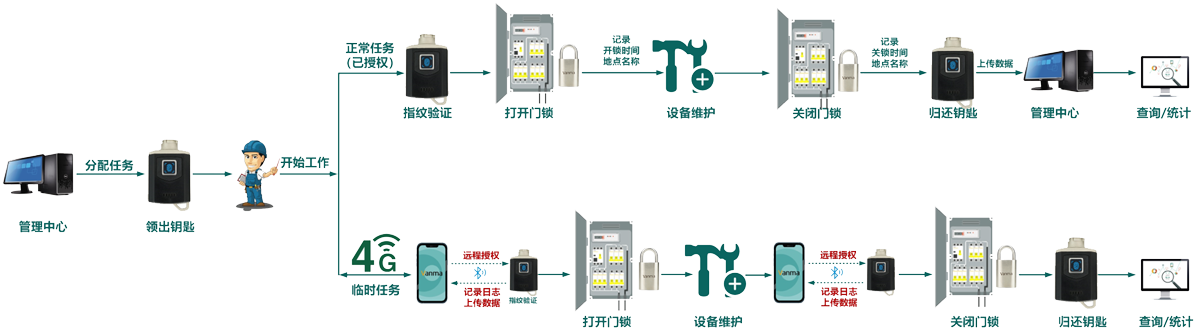 作業過程管理電子鑰匙記錄開關鎖時間,作業過程有據可依。