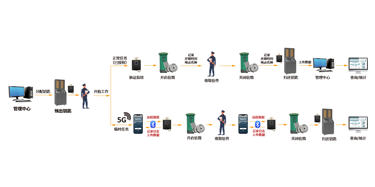 ? 數字化閉環管理:從鑰匙領用、信筒操作到數據歸庫,全流程數據無縫銜接,構建完整數字化閉環;管理人員借此精準洞察業務細節,動態調整信筒布局、人員配置,推動郵政運營降本增效,實現精細化、智能化管理轉型。