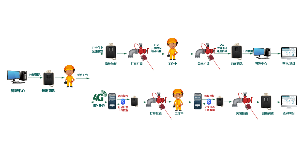 作業過程管理電子鑰匙記錄開關鎖時間,作業過程有據可依。